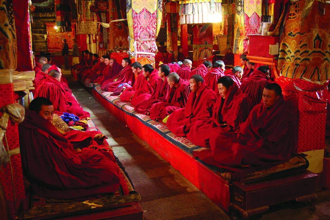 kolostorban, a tibeti buddhista kánon „szülőhelyén”. Fantasztikus régi mandalák, édeni zöld színek.
